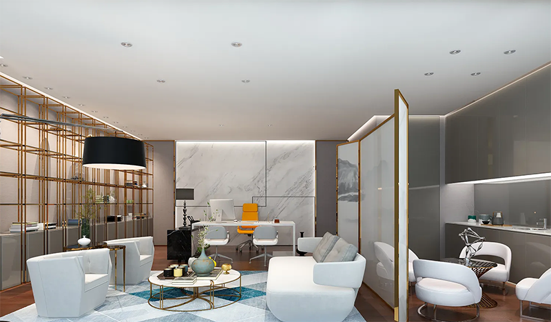 光線與色彩運用:自然光的充分引入結合溫暖或清新的色彩搭配,營造積極向上的工作氛圍。